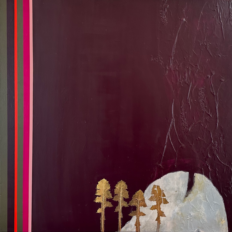 Acryl auf Leinwand, Papier, Pflanzenteile
